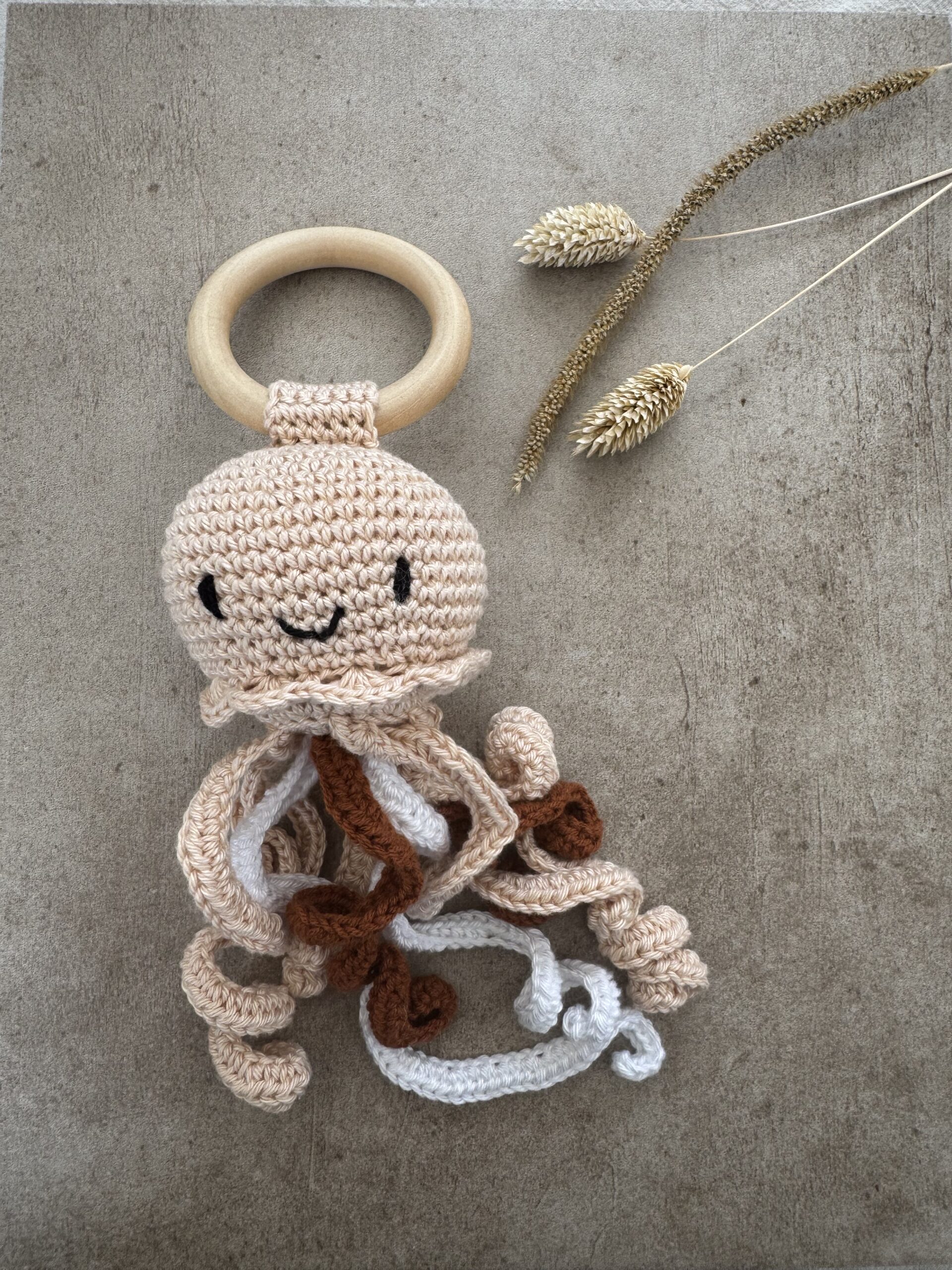 Een handgemaakte Jellyfish met verschillende bruin tinten. De bijtring is van hout.